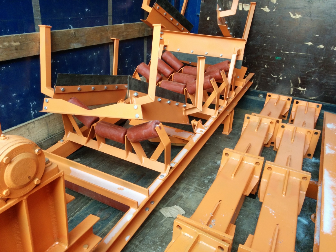 По просьбе заказчика комплекс должен был быть поставлен полностью в собранном виде, но по причине больших габаритных размеров это сделать было практически невозможно. Нашли выход - бункера ушли в собранном виде с установленными на них ленточными питателями, конвейер и площадки обслуживания пришлось везти отдельно.